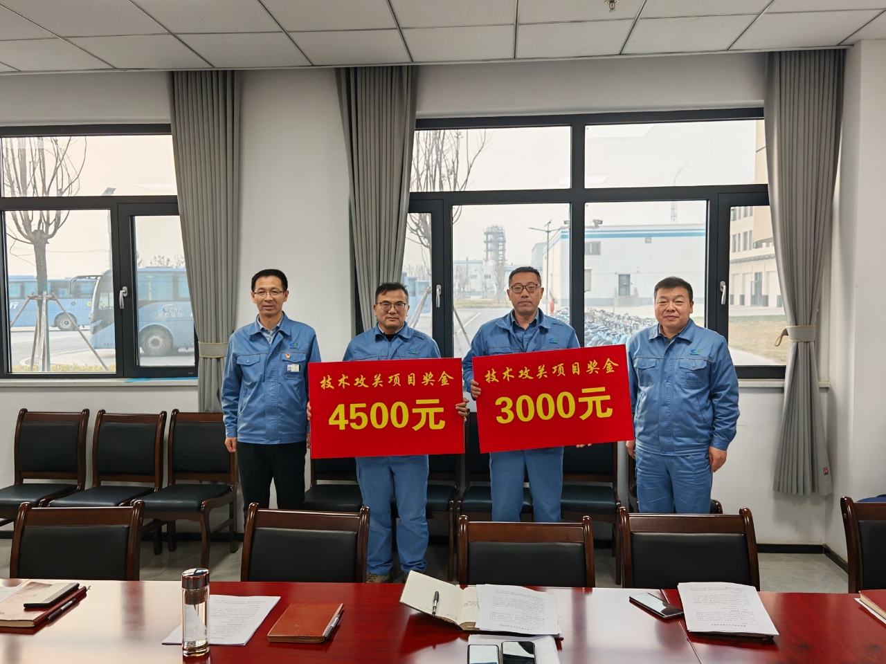 為表彰先進(jìn)、樹立榜樣,進(jìn)一步激發(fā)全體員工創(chuàng)新創(chuàng)效的積極性與主動(dòng)性,12月19日下午,公司對(duì)在自主攻關(guān)優(yōu)化項(xiàng)目中取得突出成績(jī)的孔祥昶項(xiàng)目團(tuán)隊(duì)和李征徐項(xiàng)目團(tuán)隊(duì)進(jìn)行表彰。公司黨委書記、董事長(zhǎng)姜自成,公司總經(jīng)理、黨委副書記、副董事長(zhǎng)延立強(qiáng)為其頒發(fā)了技術(shù)攻關(guān)項(xiàng)目獎(jiǎng)金。