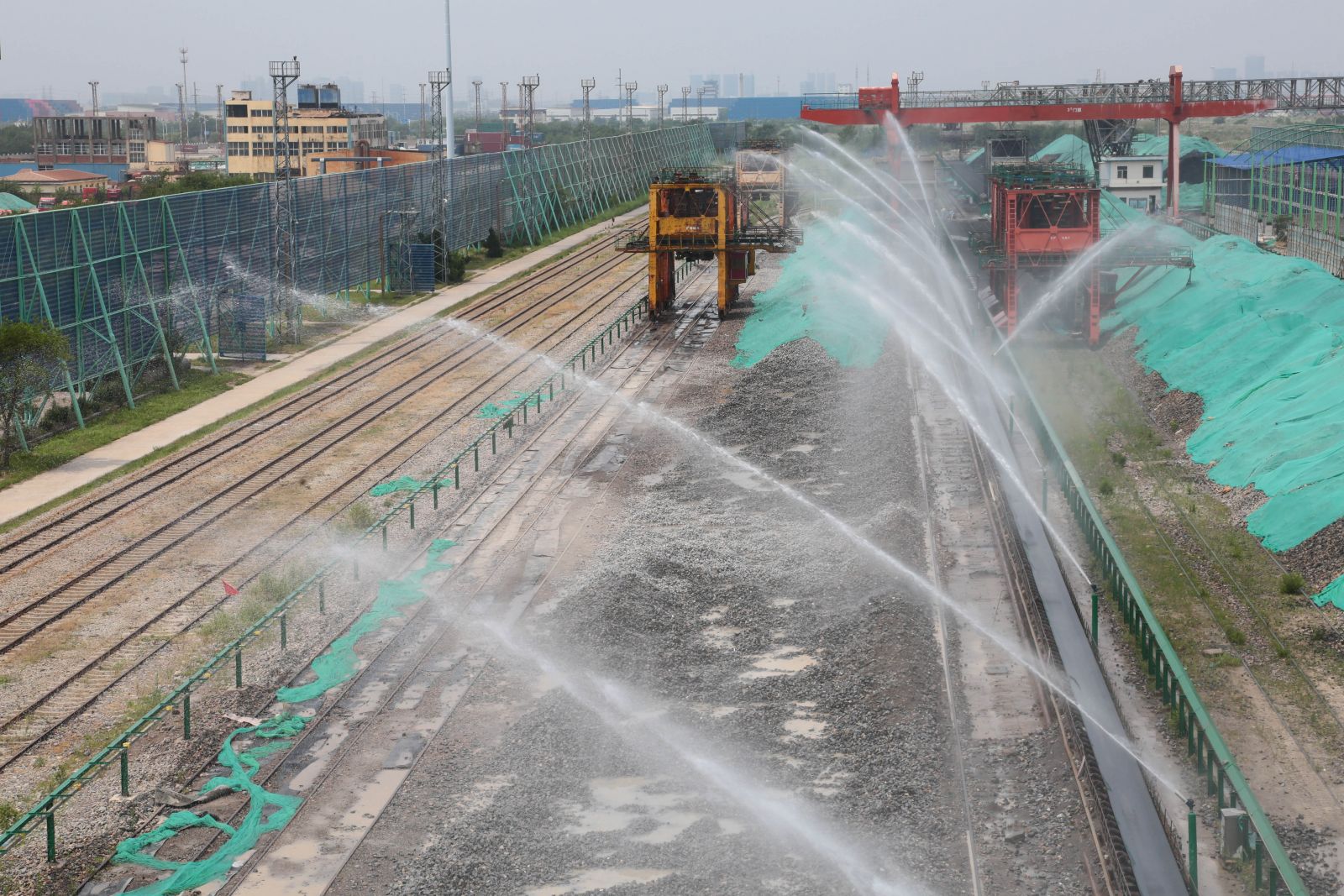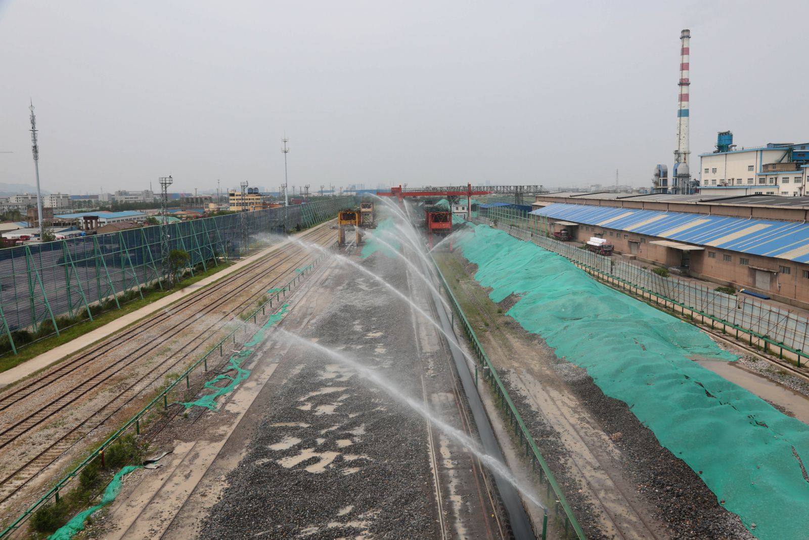 6月12日,公司定時(shí)開啟噴淋裝置,一排排的水幕準(zhǔn)確的覆蓋在原料場地存放的石灰石、焦炭和原煤堆上,消除裝卸作業(yè)時(shí)粉塵飄散對周邊環(huán)境的影響。這是公司積極落實(shí)市委市政府開展的降塵治車、保衛(wèi)藍(lán)天行動(dòng)的一種舉措。公司主動(dòng)作為,對露天原料堆場進(jìn)行整體覆蓋,每日定時(shí)噴水降塵,確保清潔文明生產(chǎn)。