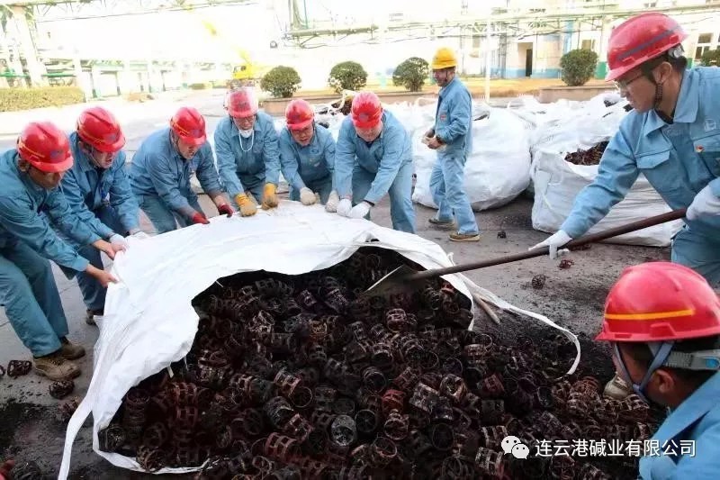 11月7日,重堿車間1#蒸餾塔計(jì)劃檢修,在檢查過程中發(fā)現(xiàn)鮑爾環(huán)被堿渣堵塞嚴(yán)重,影響正常輪換。11月12日,車間將塔內(nèi)舊填料扒出,足足有75立方??紤]到這些填料清理干凈后還有利用價(jià)值,車間牢固樹立“過緊日子”的思想,打算自行組織職工清理。