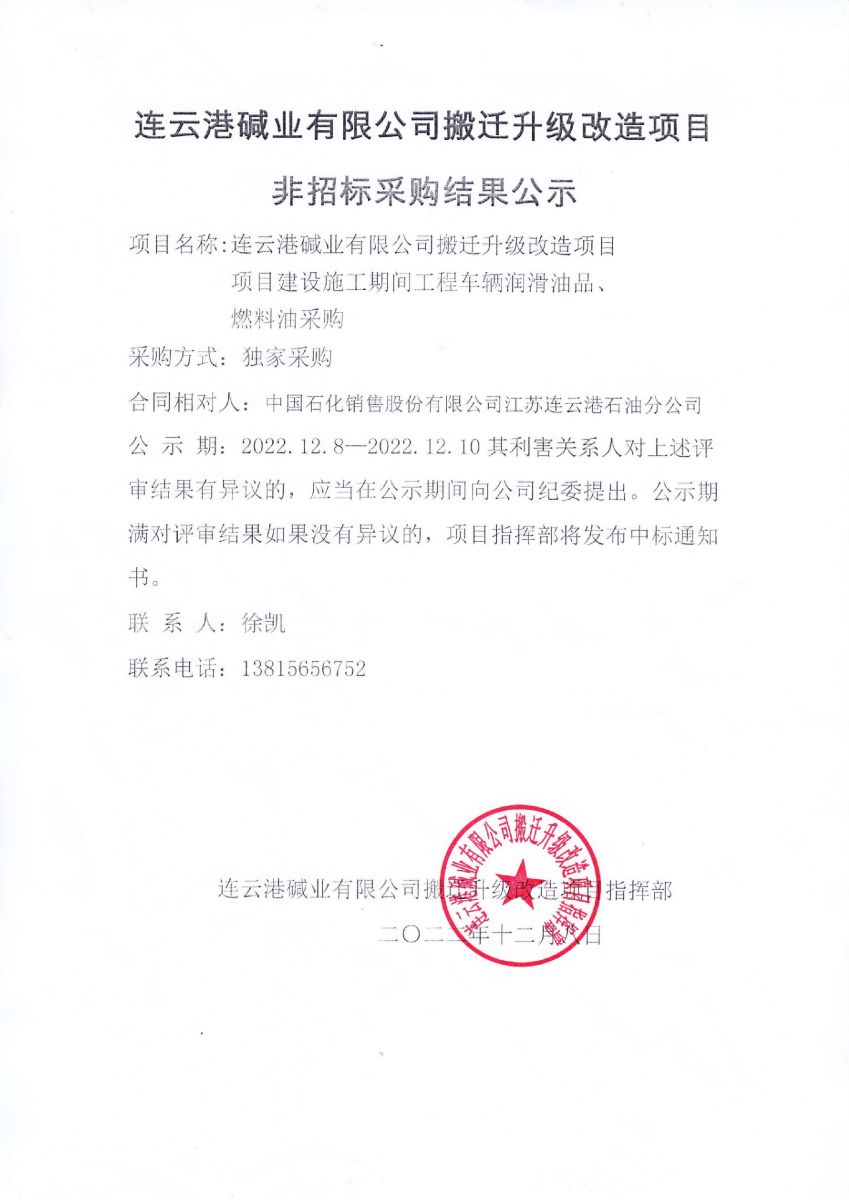 項(xiàng)目建設(shè)施工期間工程車輛潤滑油品、燃料油采購非招標(biāo)采購結(jié)果公示