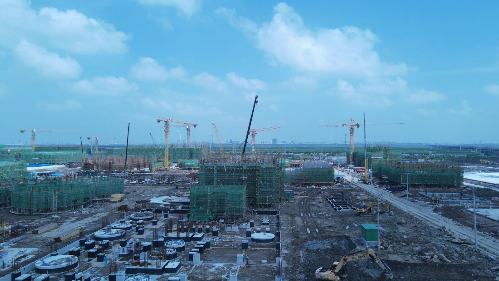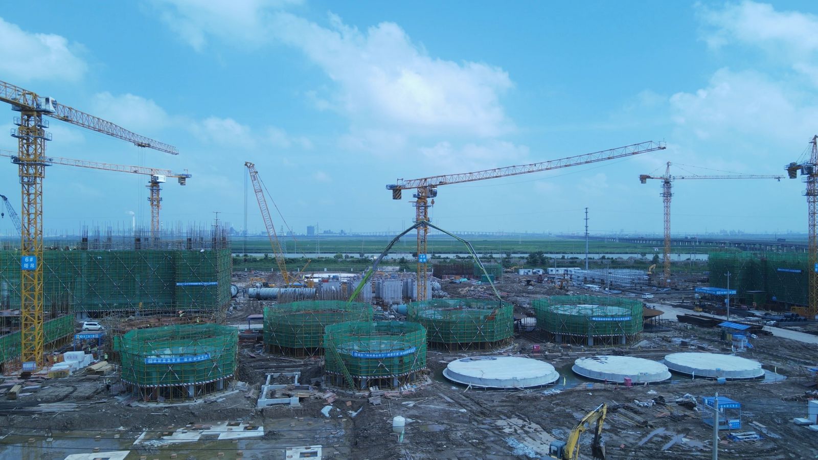 ⑸合成氨二標(biāo)段271原料煤儲(chǔ)運(yùn)破碎樓三層底板放線,#1轉(zhuǎn)運(yùn)站頂層梁板柱澆筑,#2轉(zhuǎn)運(yùn)站三層支撐架搭設(shè),鋼筋綁扎、支模,角撐、斜撐、圍檁安裝;820合成氨循環(huán)水站清凈廢水池上部結(jié)構(gòu),塔下水池墻壁支模;711煤漿制備二層腳手架搭設(shè),鋼筋綁扎,支模,安裝預(yù)埋件,初期雨水池池壁鋼筋綁扎,支模,支撐架搭設(shè),套管安裝;762壓縮機(jī)廠房上部結(jié)構(gòu)支模;761冷箱基礎(chǔ)冷箱防護(hù)墻拆模;膨脹機(jī)房上部結(jié)構(gòu)鋼筋綁扎;712氣化框架立柱腳手架搭設(shè),鋼筋綁扎,基礎(chǔ)承臺鋼筋綁扎,支模,防腐;灌注樁施工;842空分機(jī)柜間鋼筋綁扎;713渣水處理集渣池鋼筋清理,設(shè)備基礎(chǔ)預(yù)埋螺栓安裝。